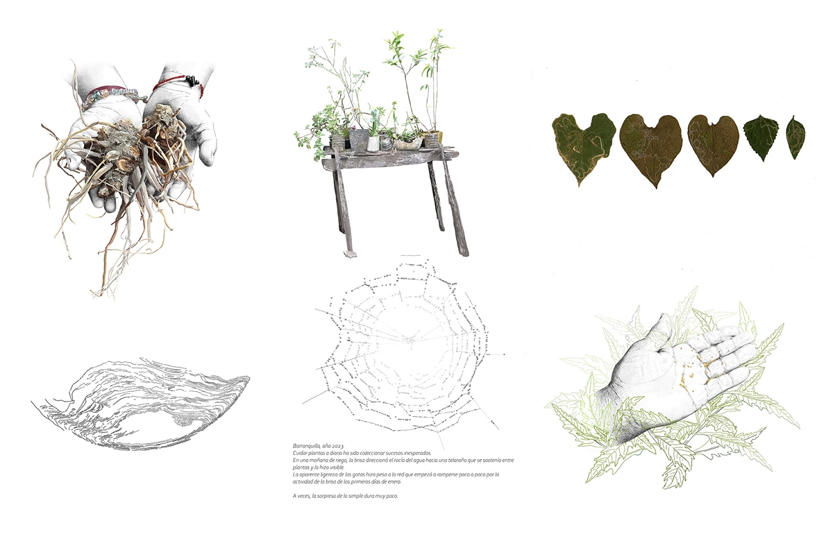 Su trabajo se desarrolla en el cruce de su labor como joven agricultora y como artista, una relación que se configura desde heredar los saberes de su padre agricultor, los saberes de la medicina de tradición y al observar de manera sensible y creativa su cotidianidad. Durante su proceso, ha adelantado acciones de recolección e intercambio de semillas criollas y libres, un gesto que se traduce en la construcción de un banco de semillas que resguarda memorias, vida e identidad para pensar lo comunitario a partir de la ocupación de la tierra, una intención que se ha desplegado a gestos sensibles y colaborativos como lo son la propagación de las especies vegetales, la transmisión del saber de la medicina en plantas y el estudio de otras materialidades a través del mundo vegetal.