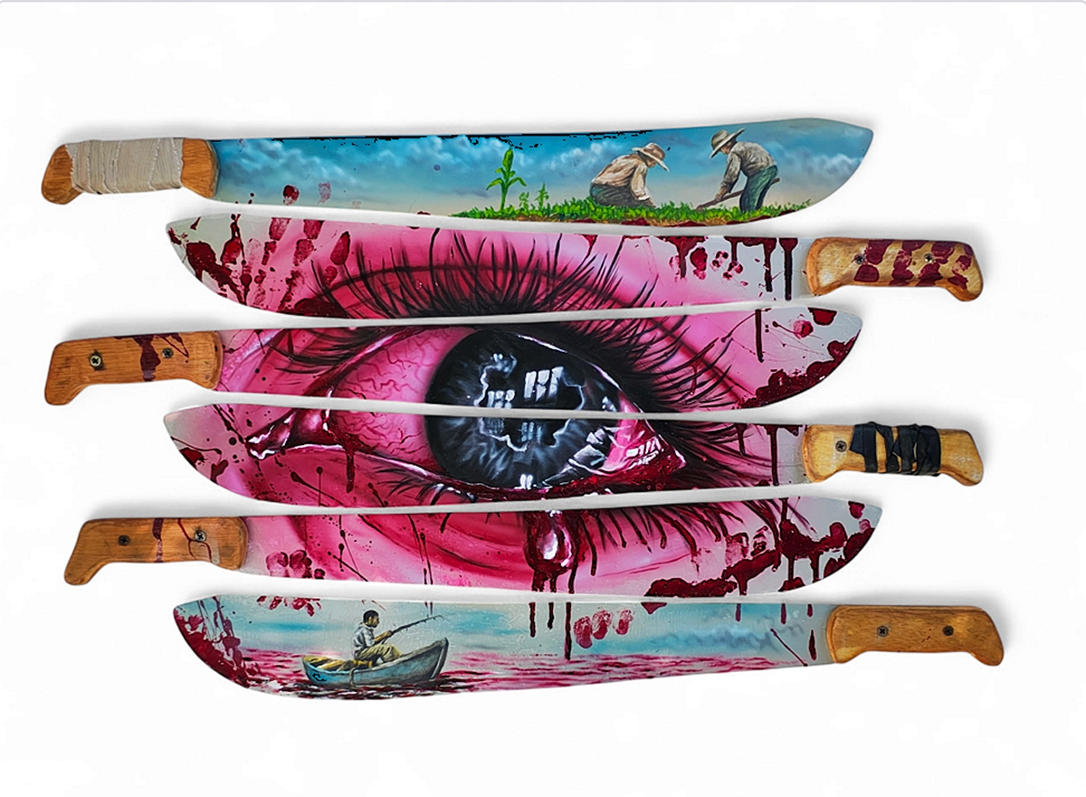 Pintura, acrílico y esmalte sobre machetes