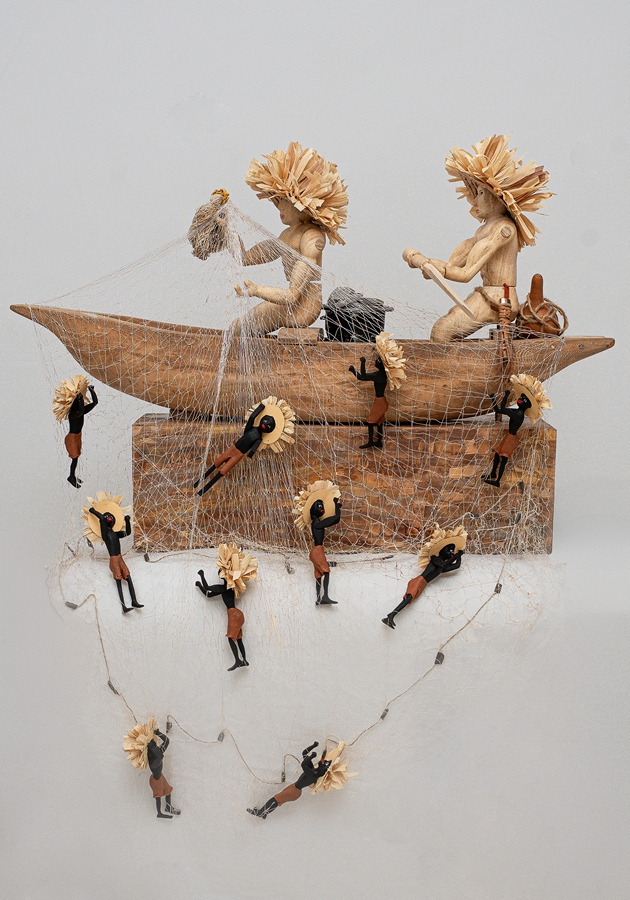 Escultura en madera naufraga, tallada a mano, acabado con técnicas naturales